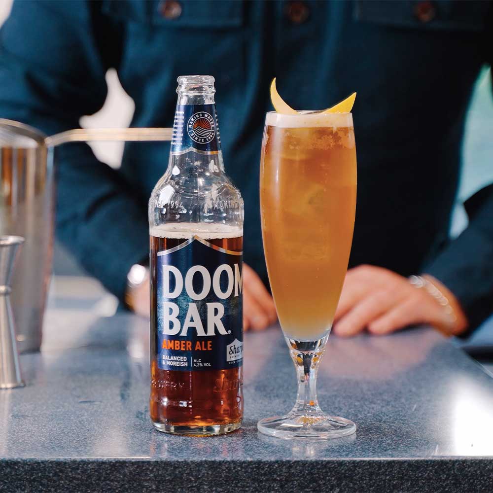 Our very own Ed Hughes, Sharp’s beer sommelier extraordinaire, shares his recipe for a cracking cocktail. Taking the classic Tom Collins, this Doom Bar infused alternative calls for Tarquin’s The Hopster Gin, our collaboration with Southwestern Distillery.